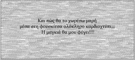 Α: Αυτό δεν θα το απαντήσω εγώ. Μπορείς να ρωτήσεις τα άτομα που με ξέρουν ή νομίζουν πως με ξέρουν (ενδιαφέρον θα ‘ταν αυτό). Ξέρεις, είναι κάπως ψωνίστικο να λες πόσο γαμάτος και κουλ και πανέξυπνος είσαι και πόσο σε θαυμάζουν όλοι κτλ κτλ. Οπότε.. α, ναι, αυτό, «θα αφήσω την ιστορία να με κρίνει».