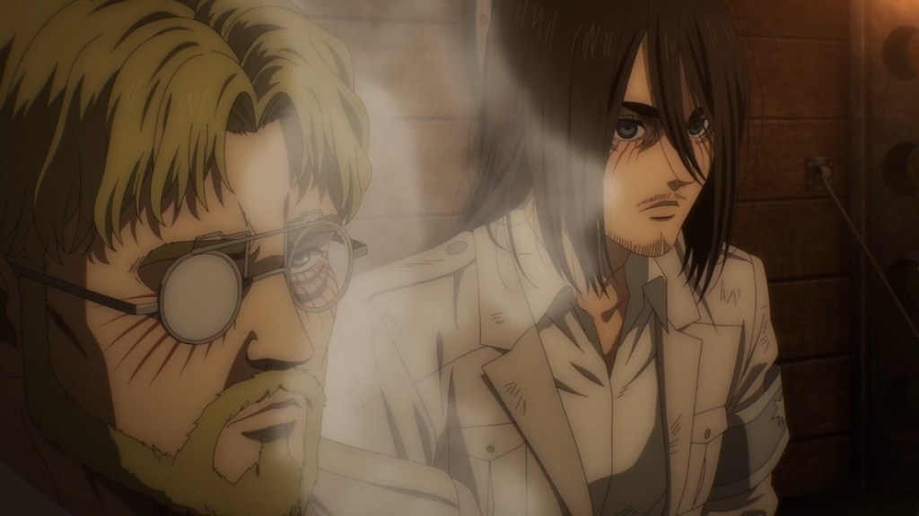 Από την άλλη, οι Eldians του νησιού αισθάνονται τύψεις γι’ αυτό που κάνουν και για τις αθώες ζωές που χάνονται, ακόμη και ο Eren, κάτι που ο Reiner, ο Bertolt και η Annie δεν έδειξαν ιδιαίτερα, και σίγουρα όχι η ηγεσία του βασιλείου του Marley. Οι τύψεις τους φάνηκαν μέσα σε αυτά τα 3 δευτερόλεπτα που κράτησε εκείνη η σκηνή ανάμεσα στον Armin και τον Eren, όταν ο δεύτερος έμπαινε στο αεροσκάφος και οι δυο τους αντάλλαξαν σιωπηλά βλέμματα γεμάτα νόημα. Ήταν μια πολύ καλή σκηνή.